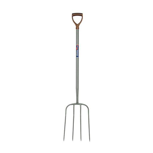 A traditional style 4 tine fork for raking manure.