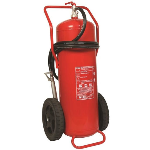 Firechief XTR 100kg Powder wheeled extinguishers are commonly used for large fuel storage areas and offshore marine facilities as it can tackle A, ...